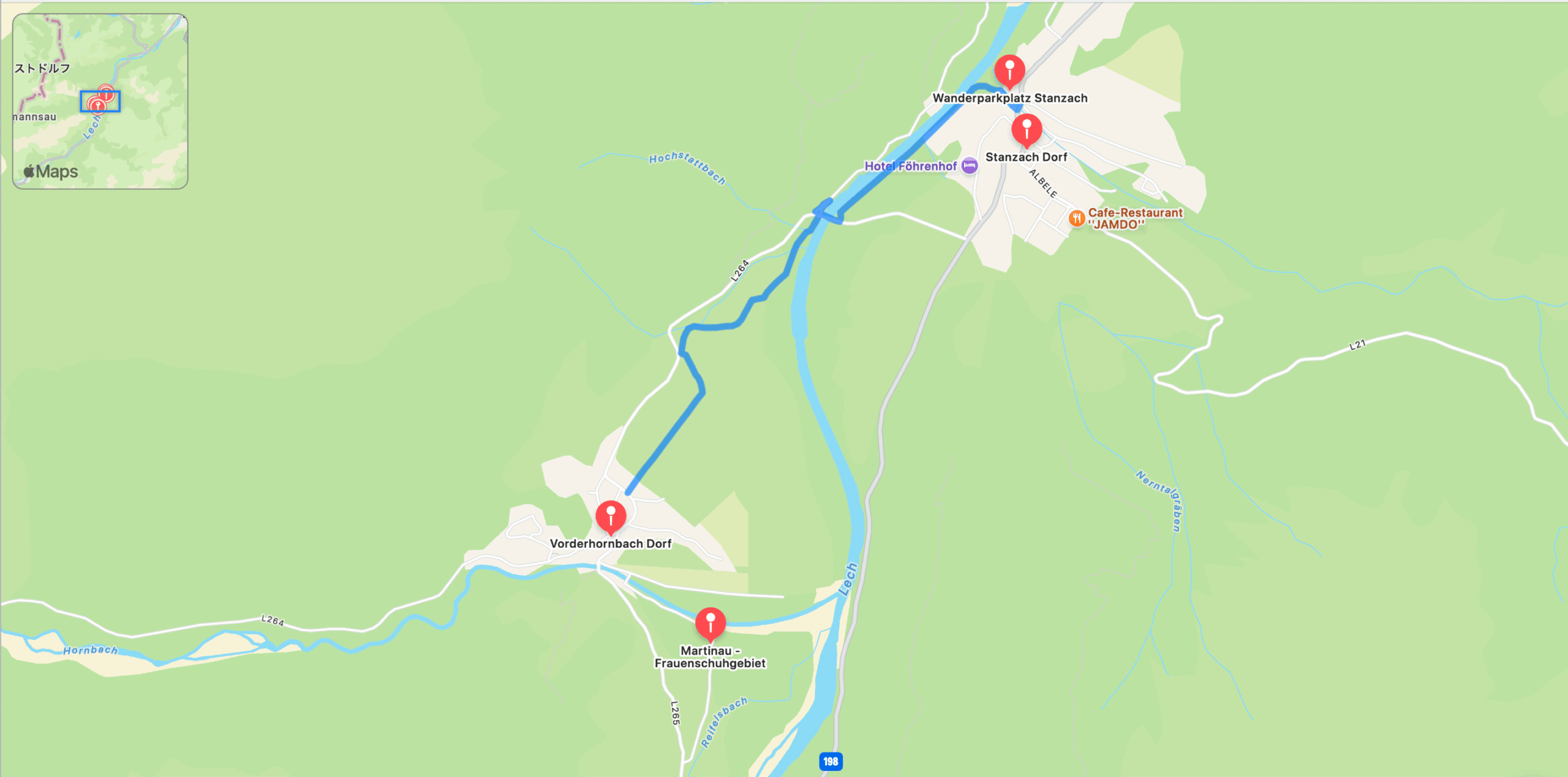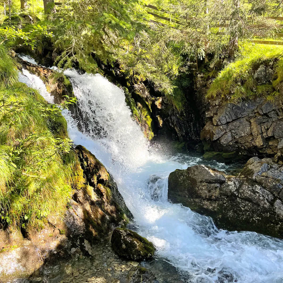 フォルダーホルンバッハから野原の小道をレヒ橋まで歩きます。ここで川を渡り、川岸に沿ってシュタンツァッハまで歩きます。