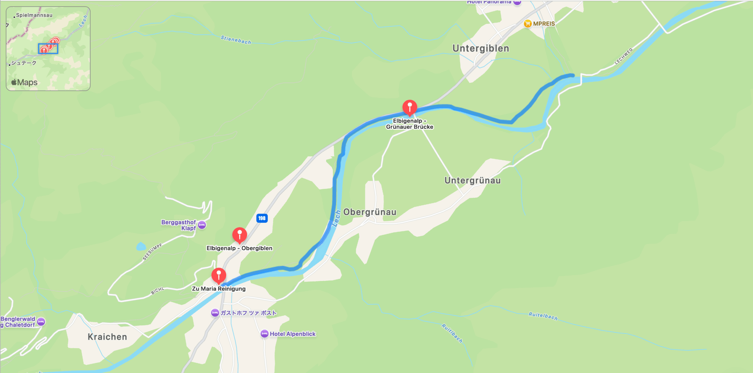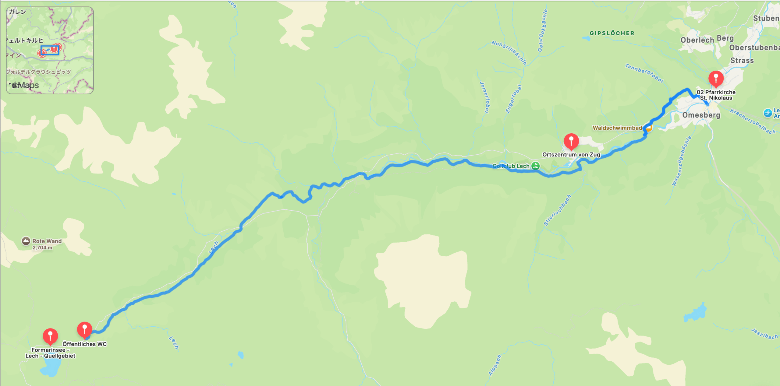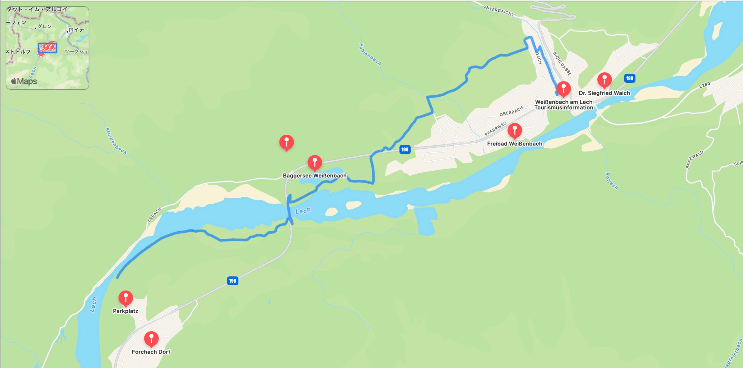 エルビゲンアップから、レッヒヴェークへ続く道を通ってレヒ川に戻ります。