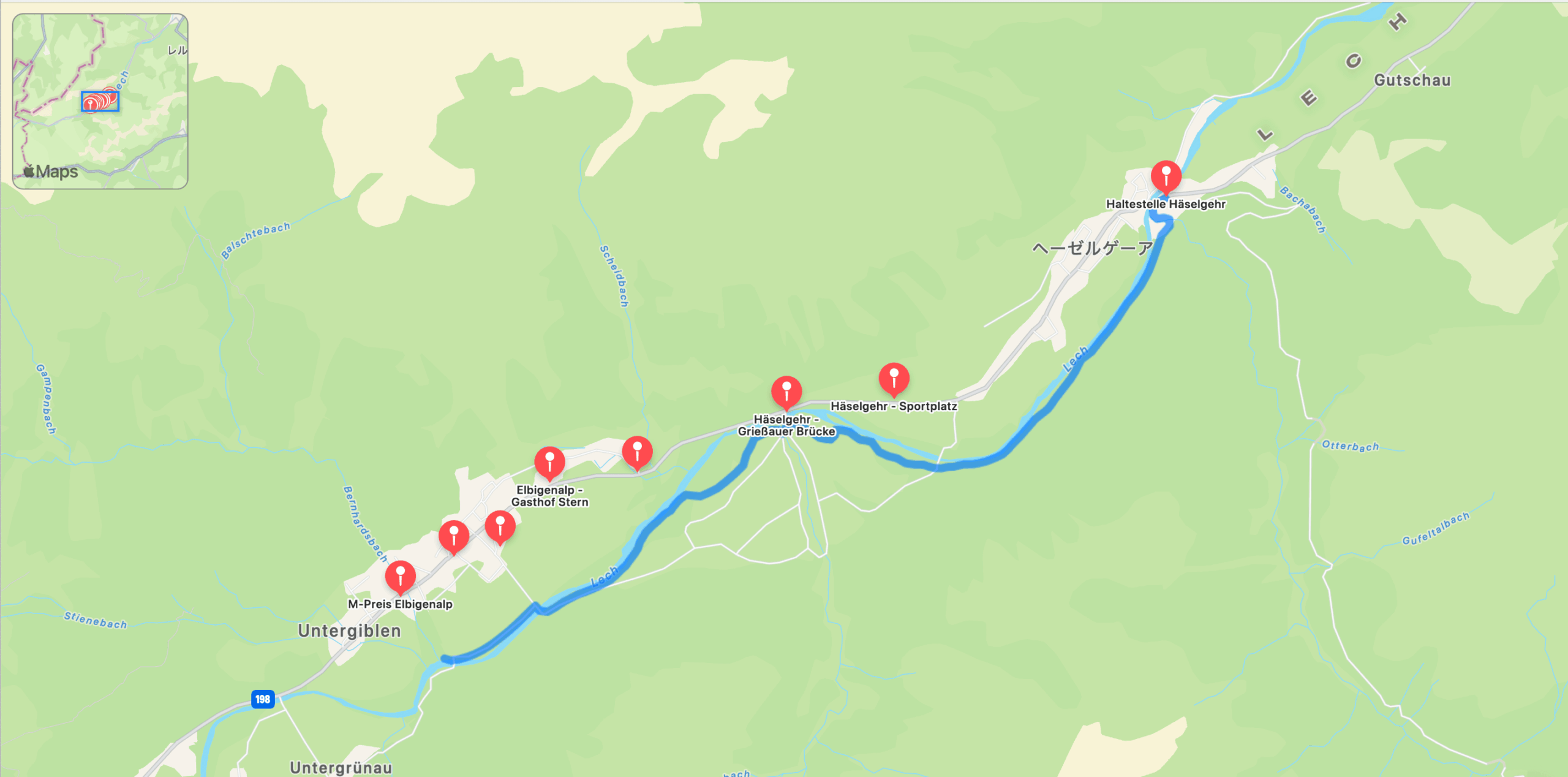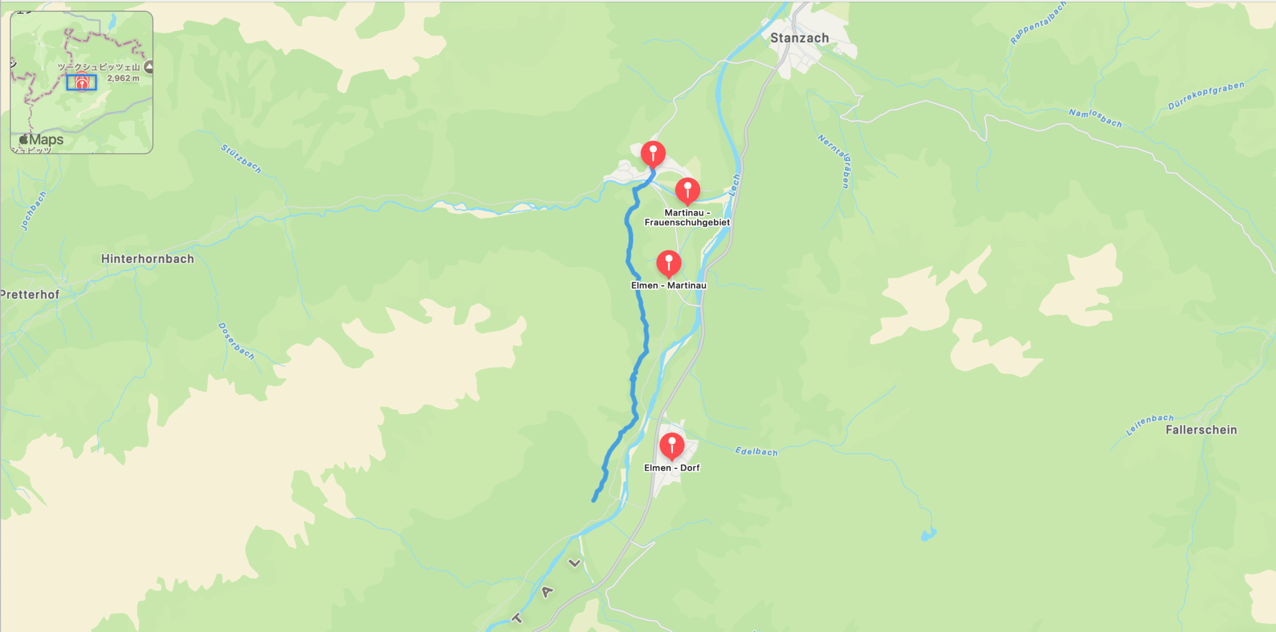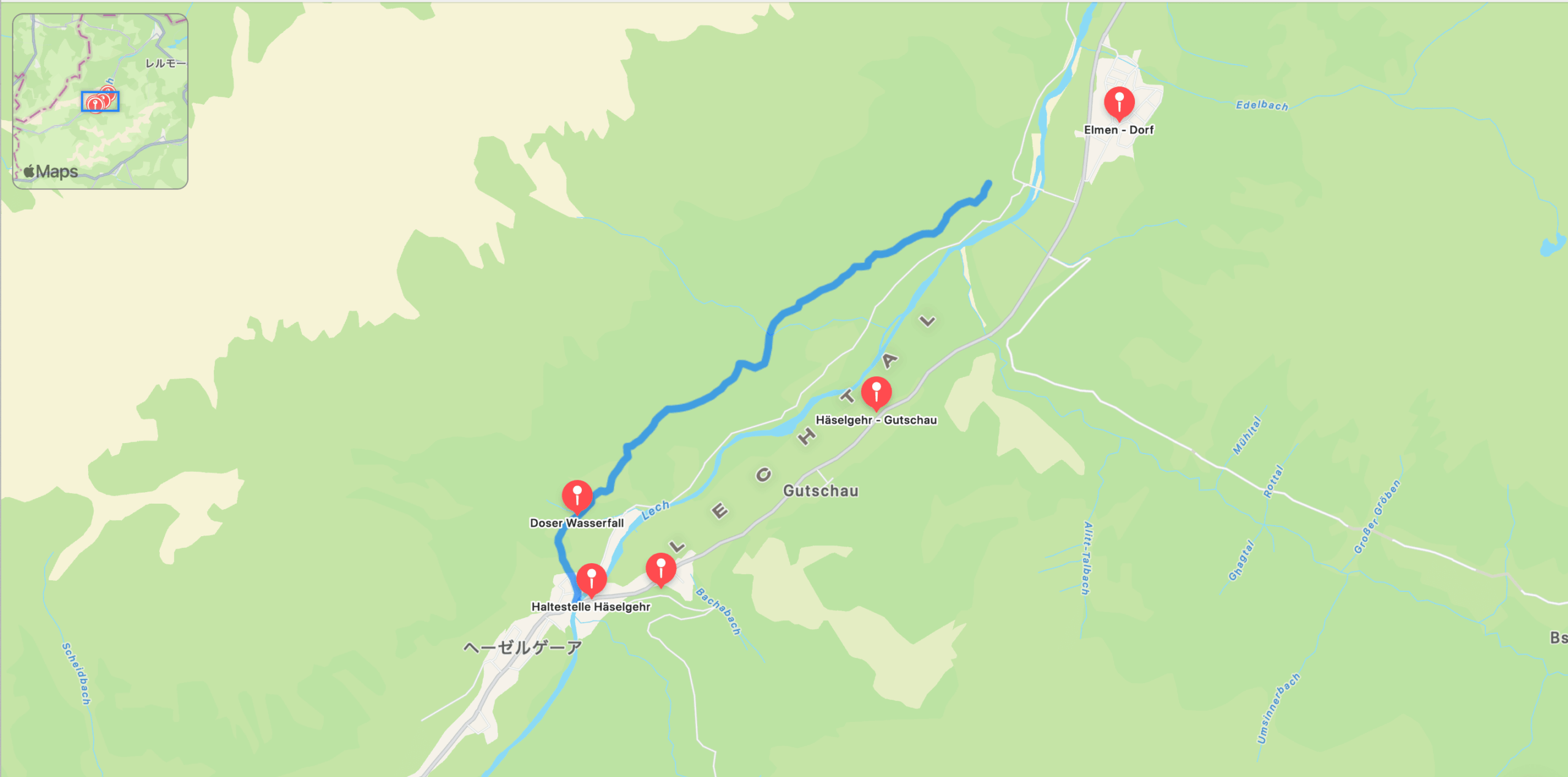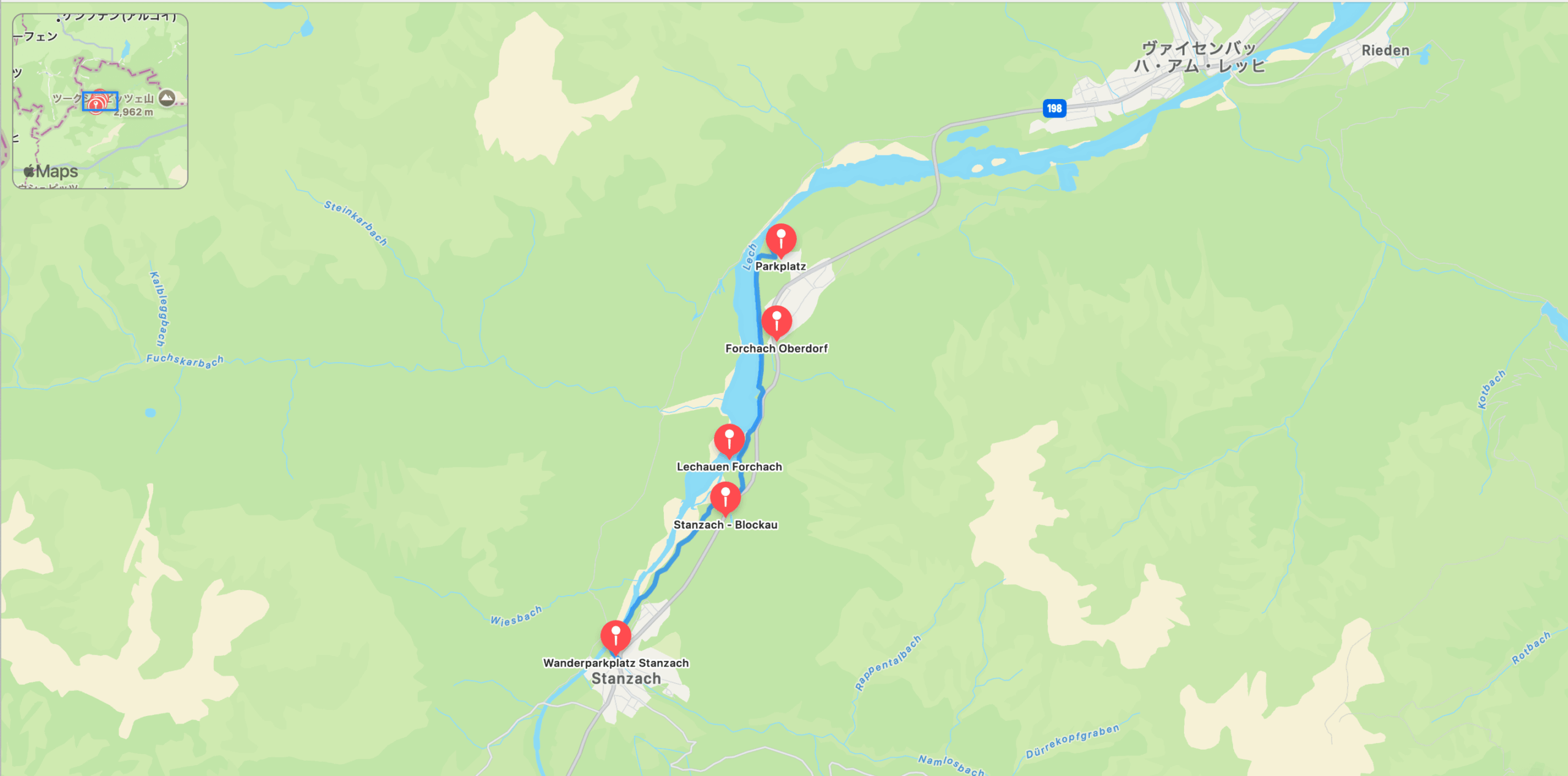 エルビゲンアップから、レッヒヴェークへ続く道を通ってレヒ川に戻ります。