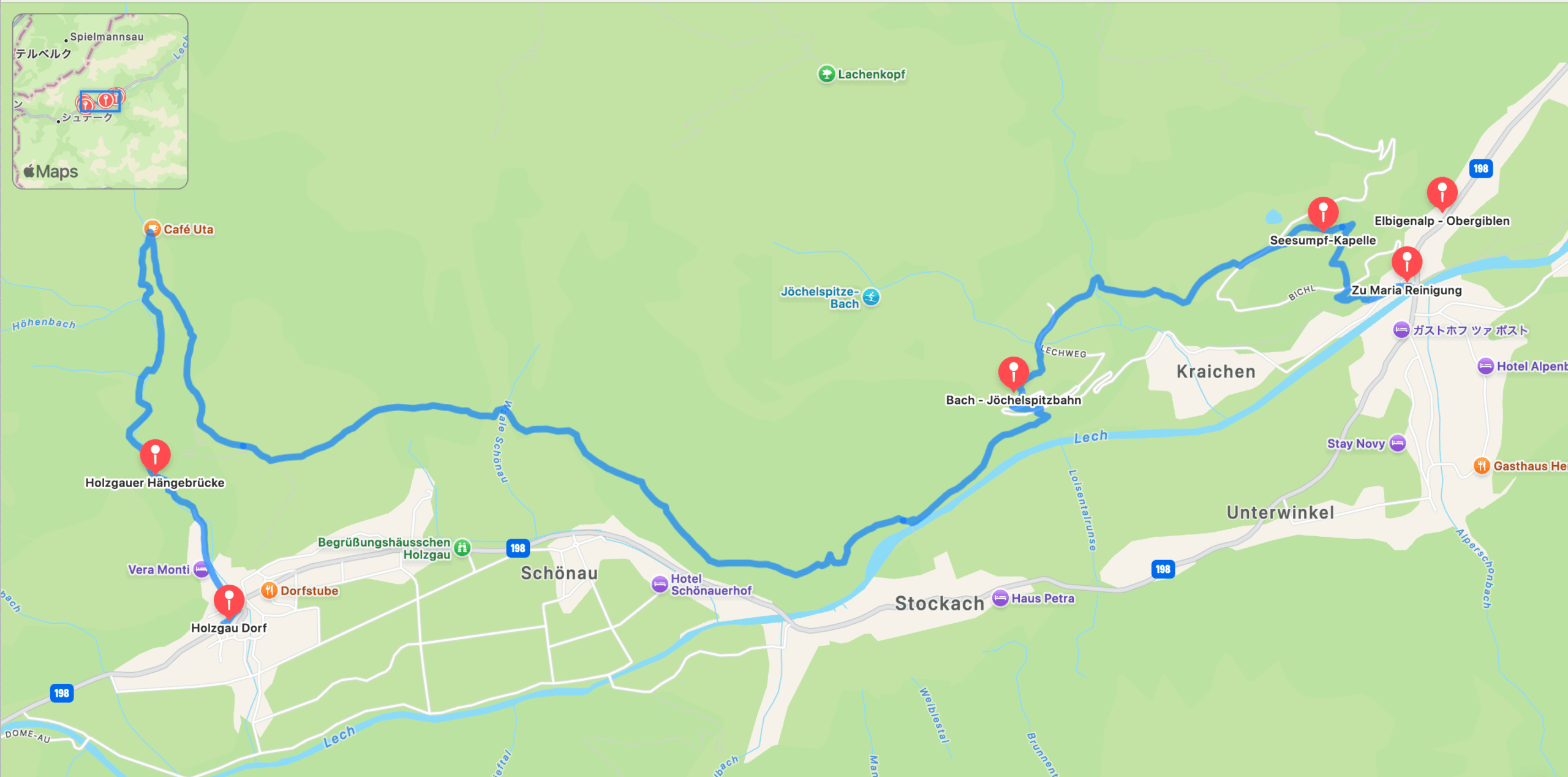 この区間はヨッホヴェークをのんびりと歩き、レヒ川に沿って絵のように美しいホルツガウの村へと続きます。