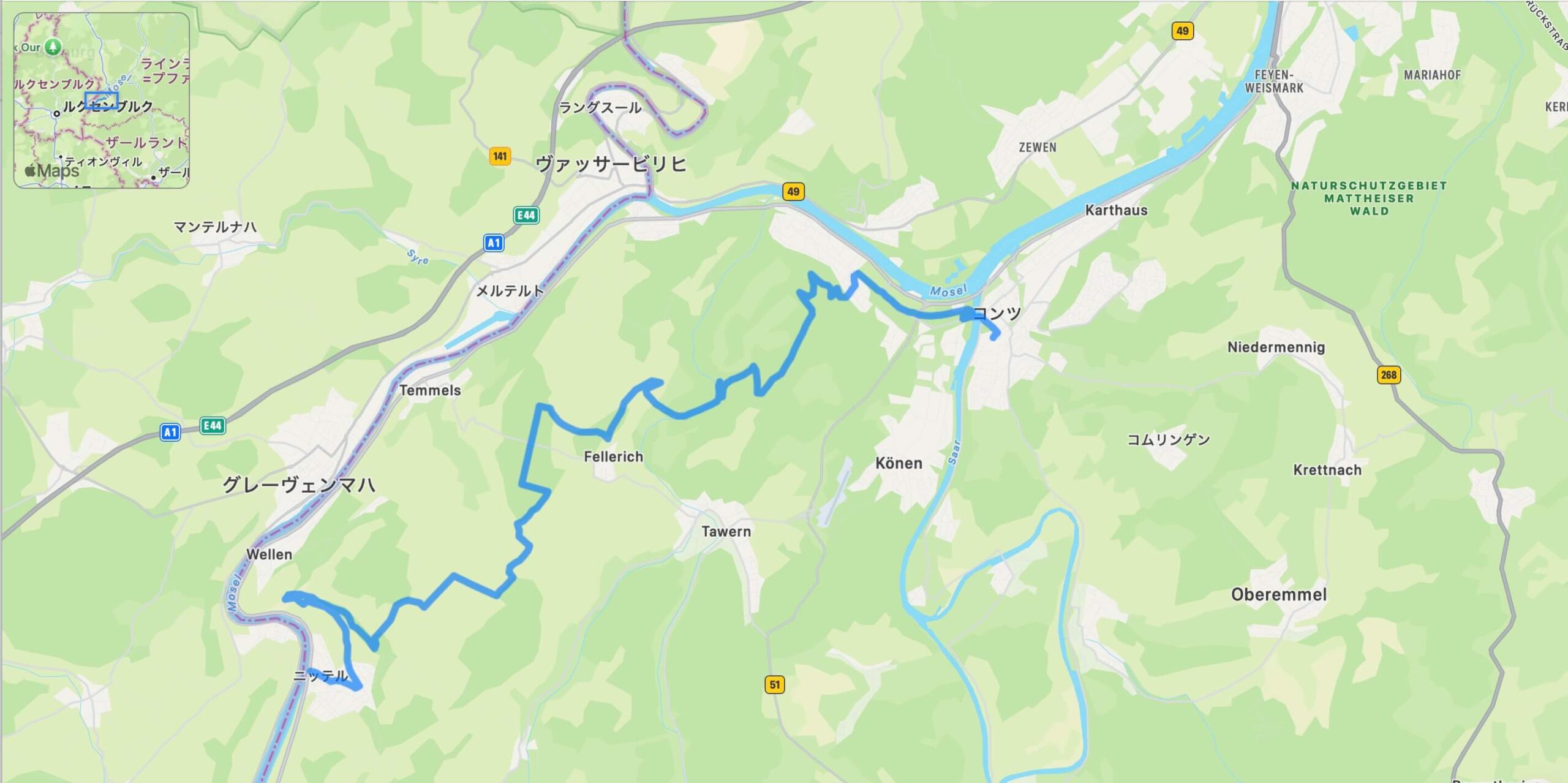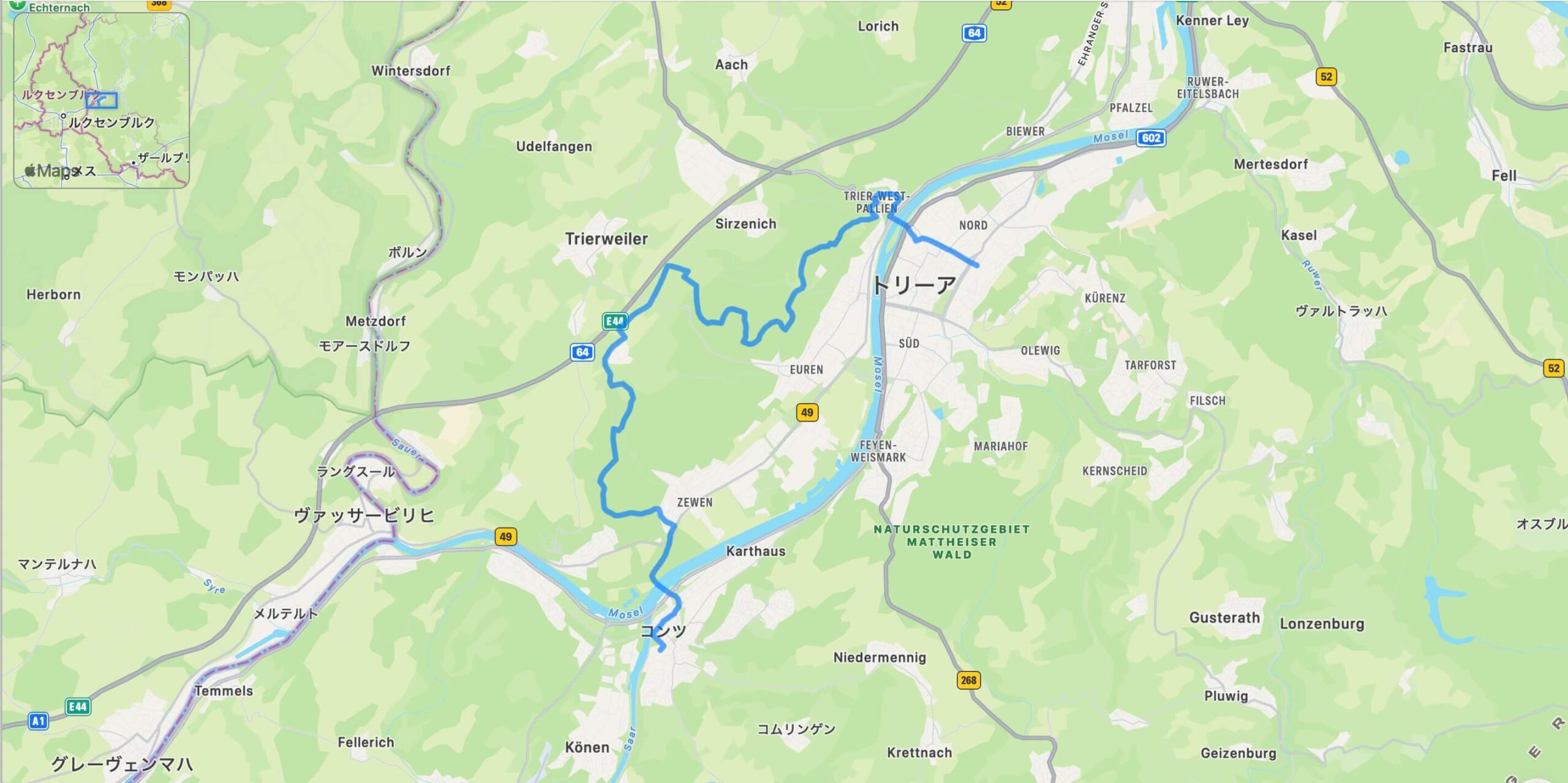 終点のコンツはザール川がモーゼル川に合流する地点に位置し、民俗・野外博物館ロシャイダー・ホーフなどの見どころがあり、歴史と文化に触れながら旅の余韻を楽しめます。